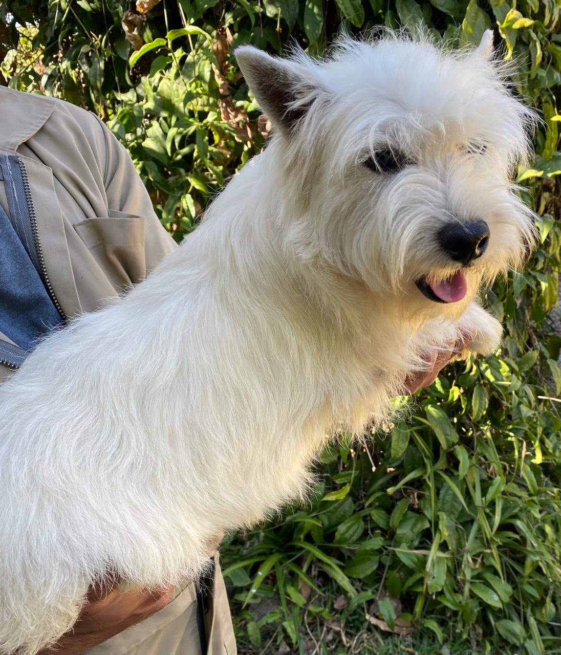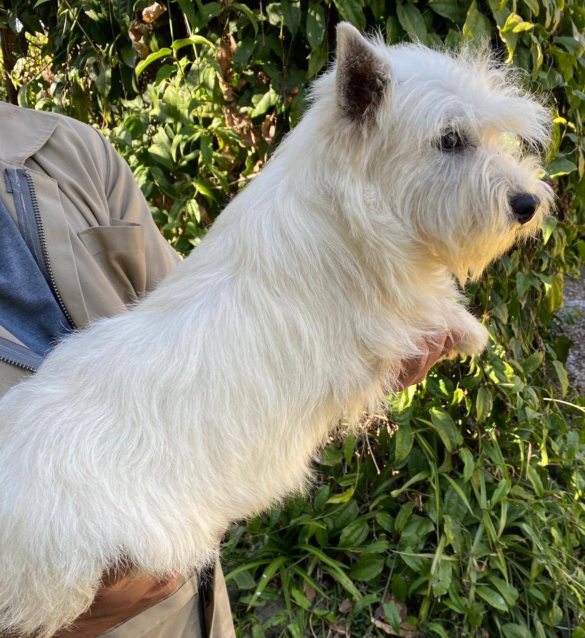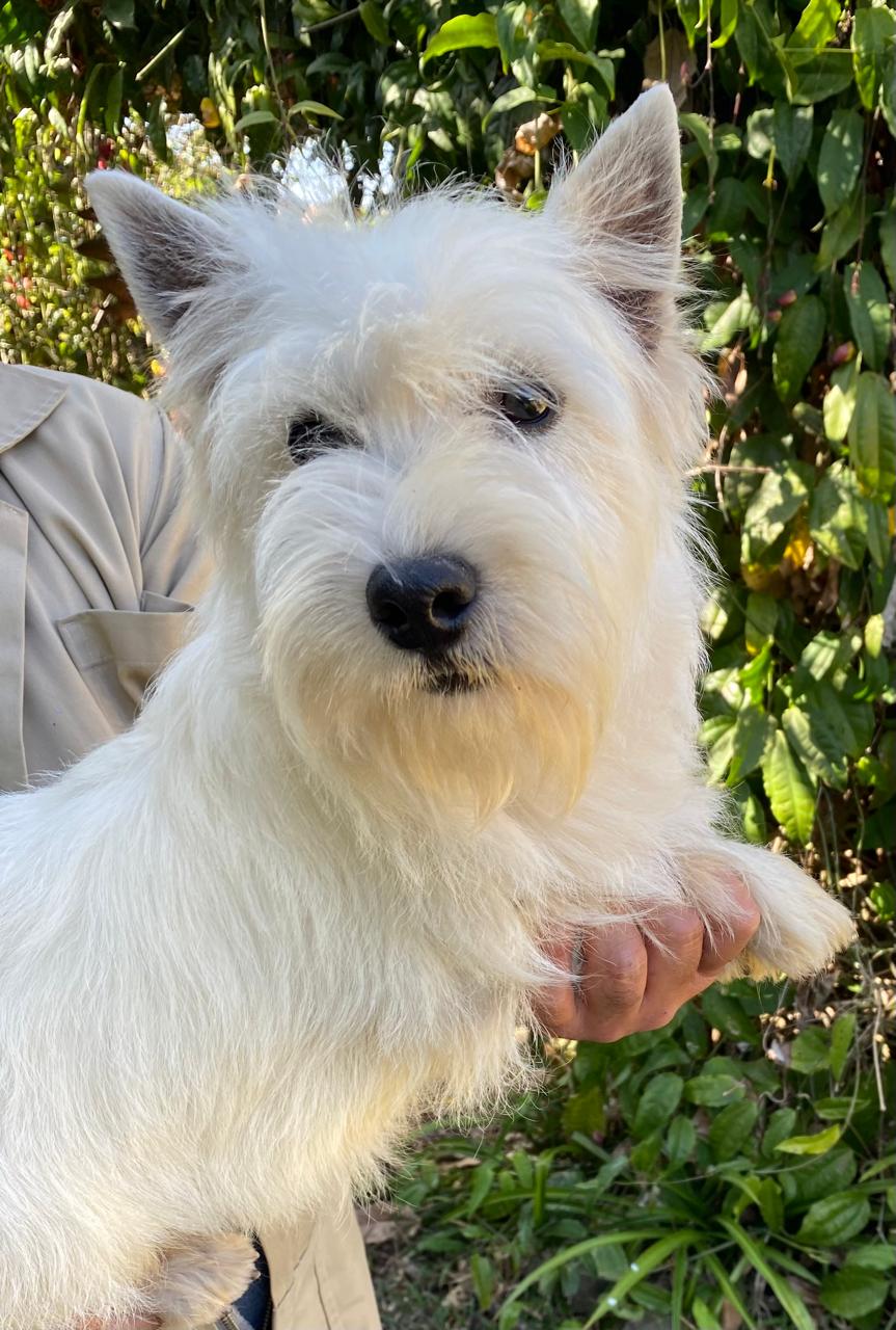 Bella ejemplar Westy hembra de bellísima conformación y talla. Con aplomos muy correctos. Pelaje blanco profundo con pigmentación negra de piel en todo el cuerpo. Excelente carácter.